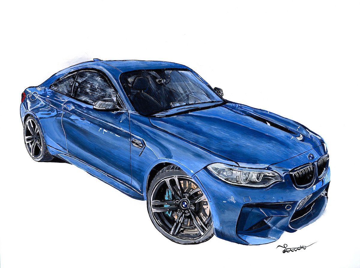 This painting of the BMW M2 was completed for a high following influencer @noteworthyexotics. Every brush stroke captures the car exactly how it feels in real life -its power, speed, and sporty personality. Every detail was painted with focus and dedication as this took me around 30 hours to complete.