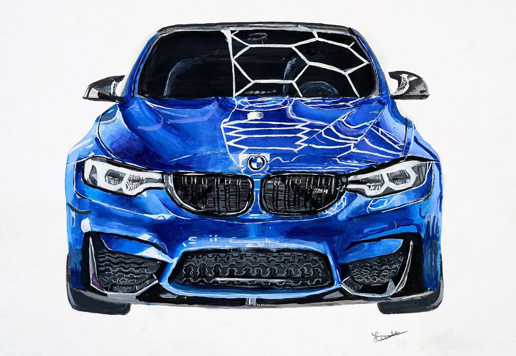 This San Marino Blue BMW M4 painting captures the car’s design and performance. Bold, expressive detail brings the inline-six engine to life, highlighting the rare color and stunning design. This exclusive piece is guaranteed to satisfy every time you see it. Done for @carsofkitchener.