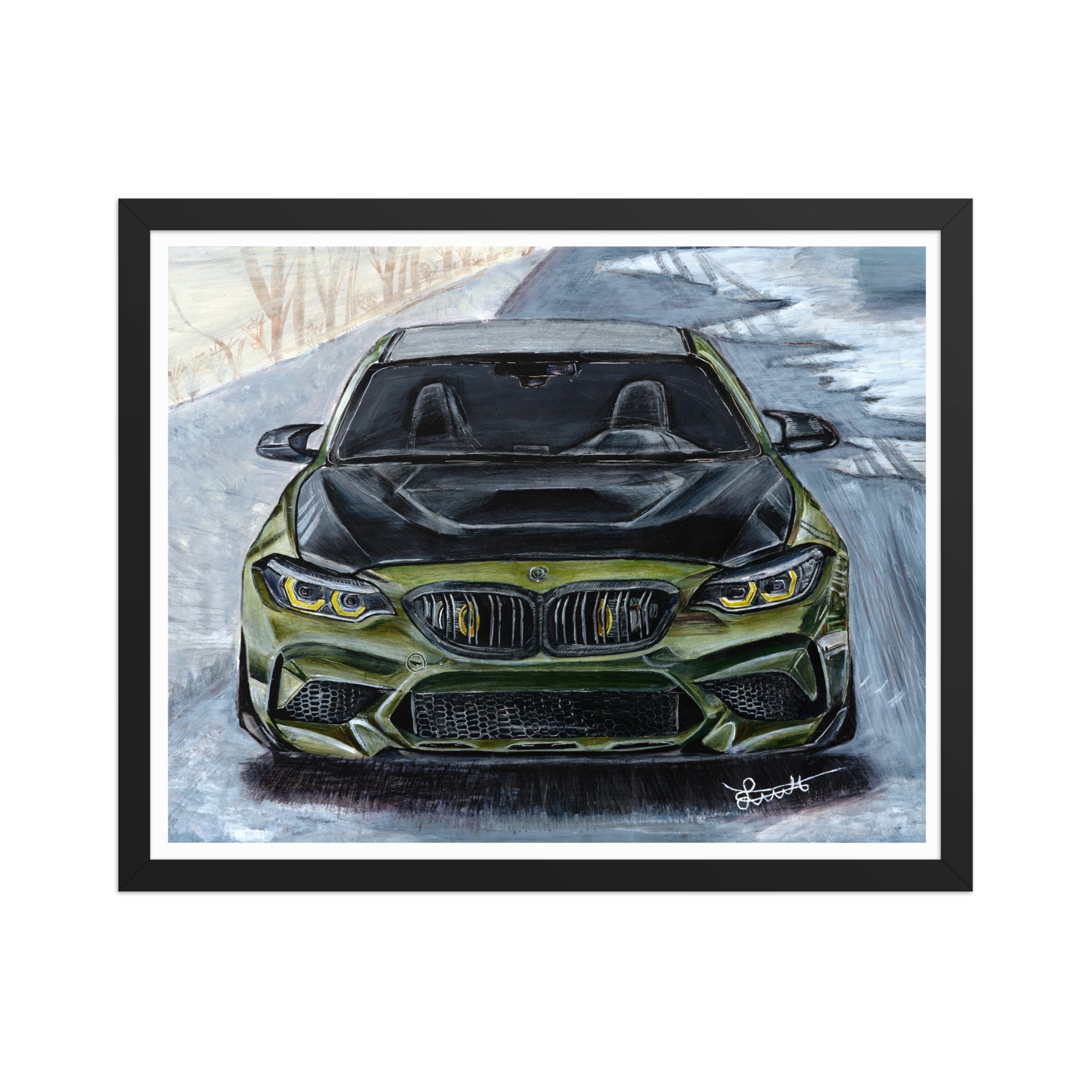 This custom M2 Competition was hand-painted for automotive influencer Max. A one-of-a-kind piece that captures the rare spec with expressive detail that is bold, unique, and guaranteed to turn heads in person